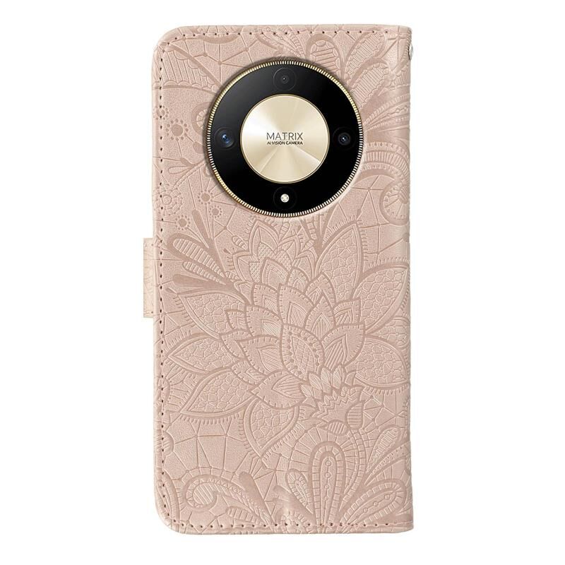 Θήκη τηλεφώνου από δέρμα με ανάγλυφο σχέδιο δαντέλας λουλουδιών για Honor Magic6 Lite / X50 / X9b (Γκρι)