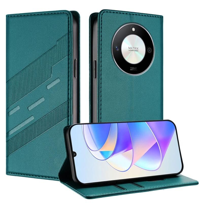 Θήκη τηλεφώνου από δέρμα retro, πολυλειτουργική με πορτοφόλι, ανάγλυφη για Honor Magic6 Lite / X9b 5G (Μαύρο)