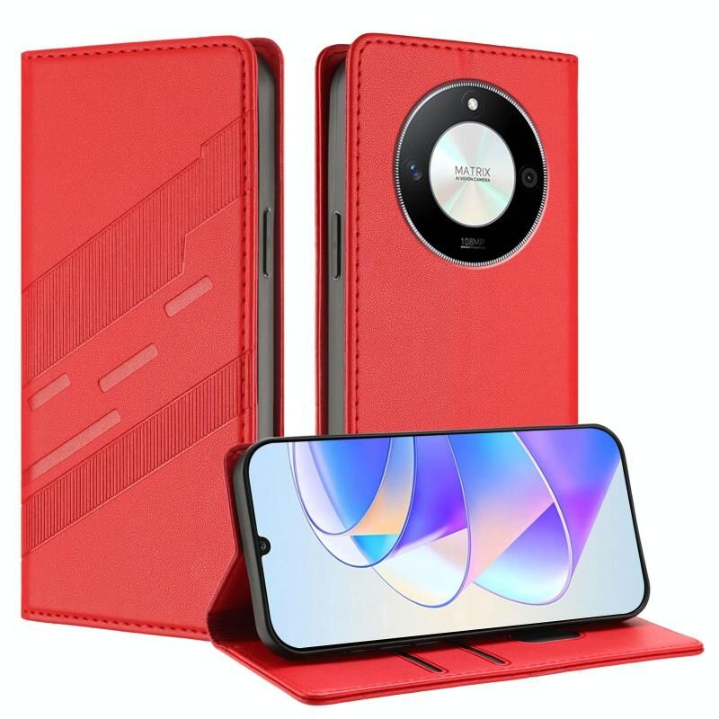 Θήκη τηλεφώνου από δέρμα retro, πολυλειτουργική με πορτοφόλι, ανάγλυφη για Honor Magic6 Lite / X9b 5G (Μαύρο)