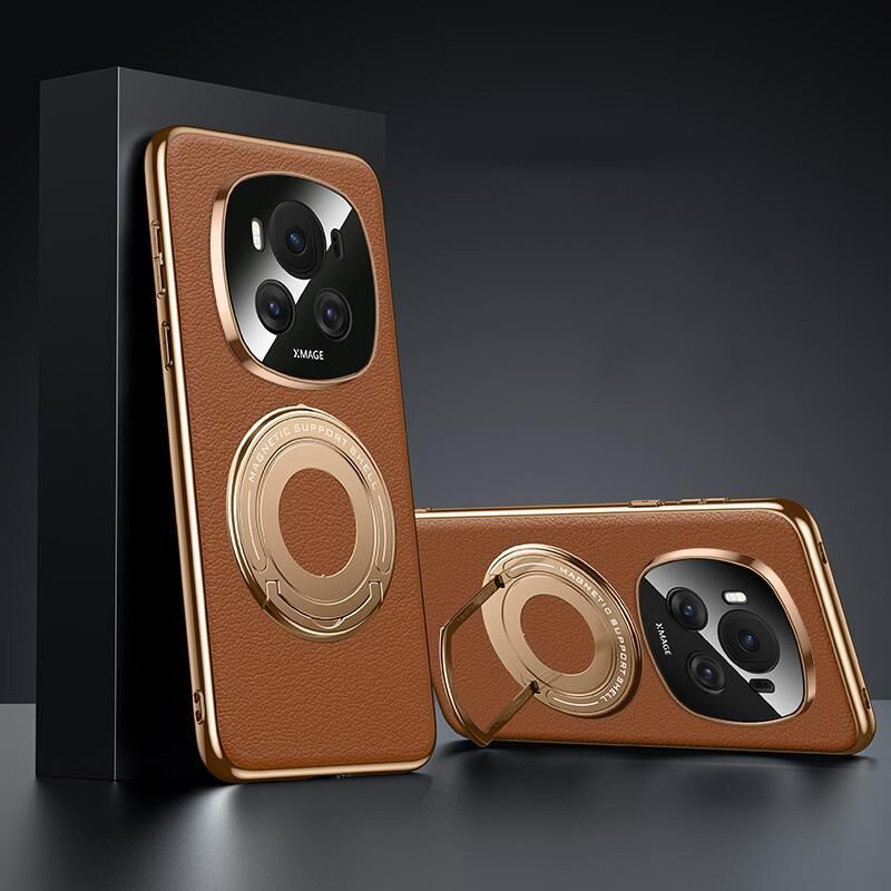 Θήκη τηλεφώνου MagSafe For Honor Magic6, Απλό Δέρμα, Υδρόφοβη Μεταλλική Βάση (Γκρι)
