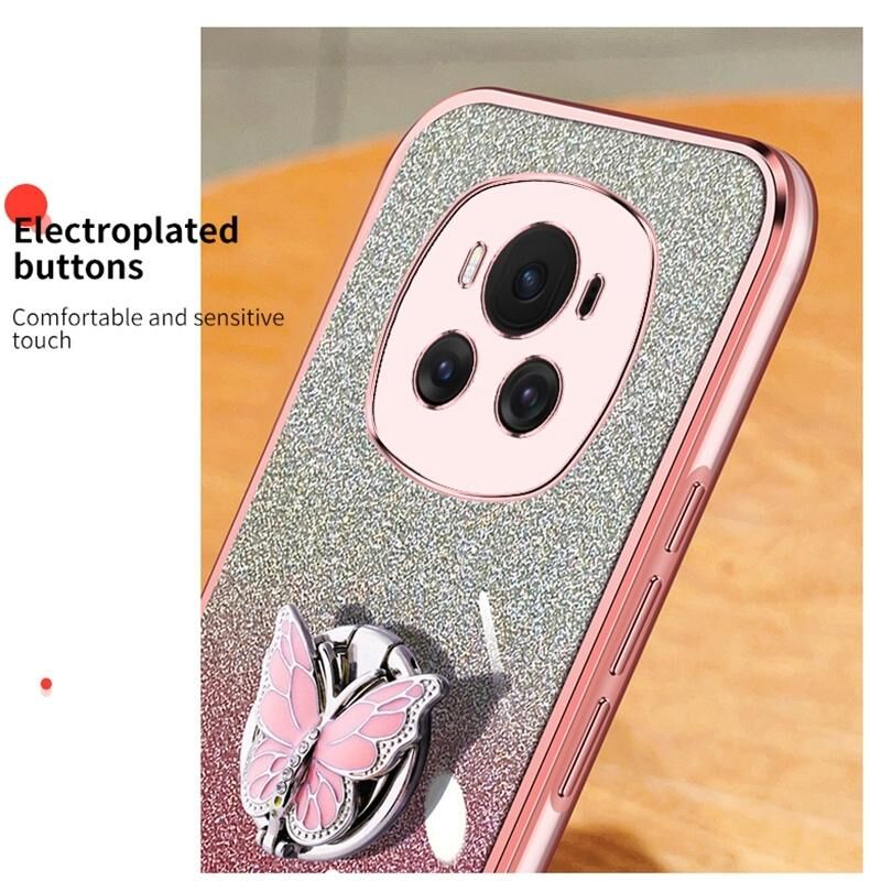 Θήκη κινητού τηλεφώνου TPU με σχέδιο πεταλούδας από γκλίτερ με διαβαθμισμένο χρώμα για Honor Magic6 (Ροζ)