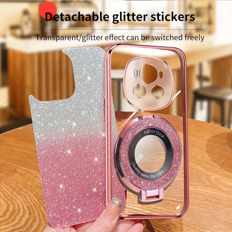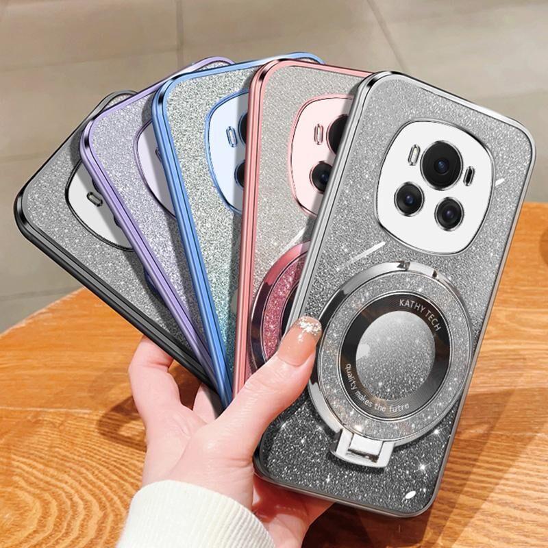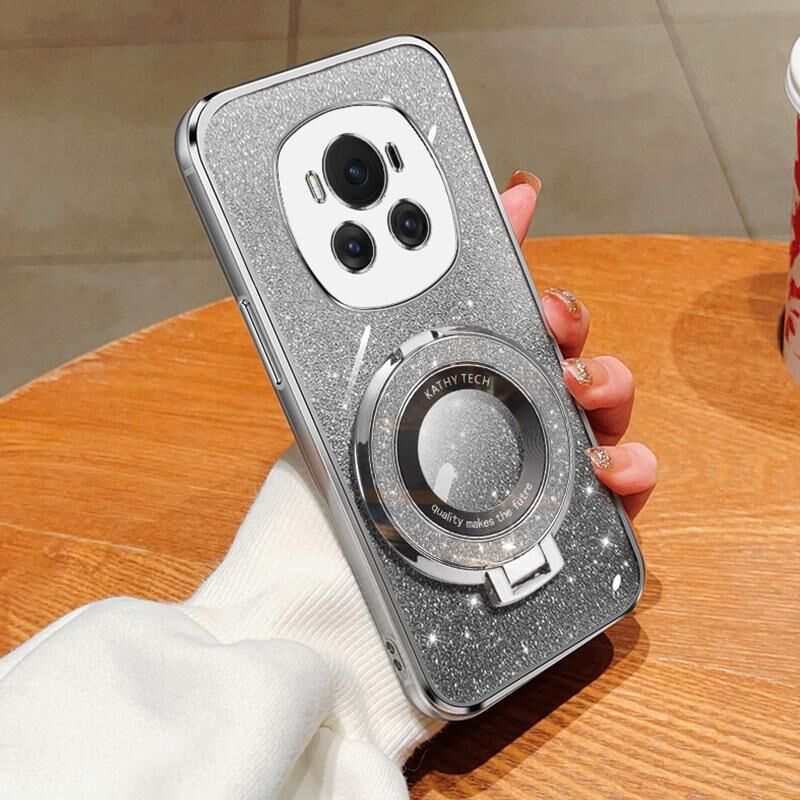 Για Honor Magic6 επιμεταλλωμένο διαβαθμισμένη Glitter στρογγυλή κάτοχος TPU τηλέφωνο υπόθεση (Ασημί)