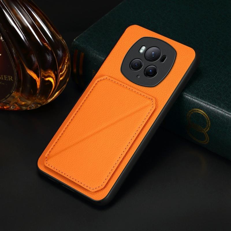 For Honor Magic6 Pro 5G D04 Calf Texture Dual Card Slot Holder Phone Case(Orange)