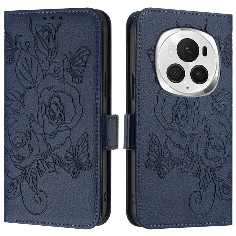 For Honor Magic6 Pro 5G Embossed Rose RFID Anti-theft Leather Phone Case(Dark Blue)