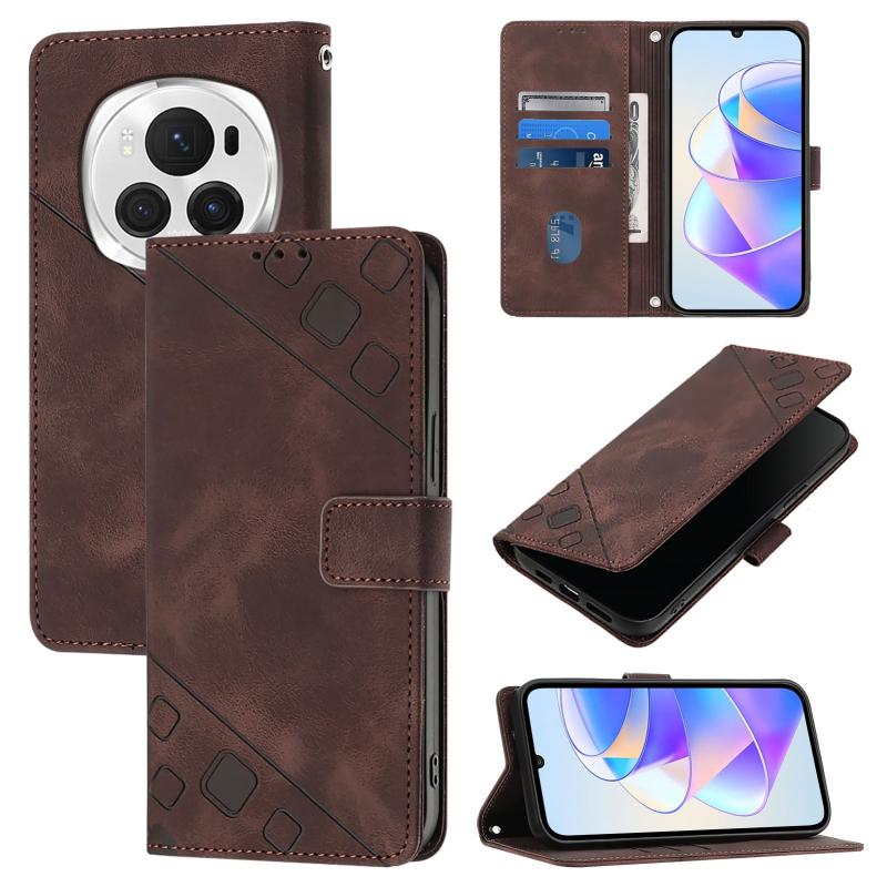 For Honor Magic6 Pro 5G Global Skin-feel Embossed Leather Phone Case(Brown)