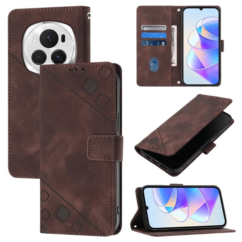 Θήκη τηλεφώνου Honor Magic6 Pro 5G Global με δέρμα ανάγλυφο με αίσθηση αφής (Καφέ)