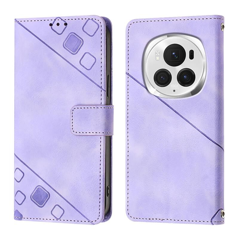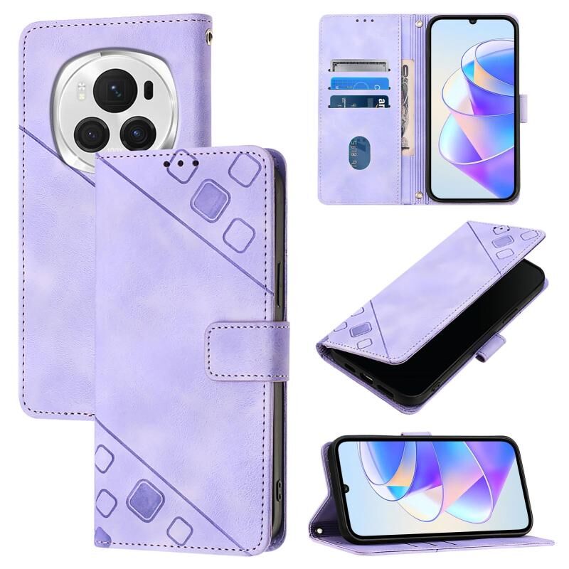 Θήκη τηλεφώνου Honor Magic6 Pro 5G Global με δέρμα ανάγλυφο με αίσθηση αφής (ανοιχτό μωβ)