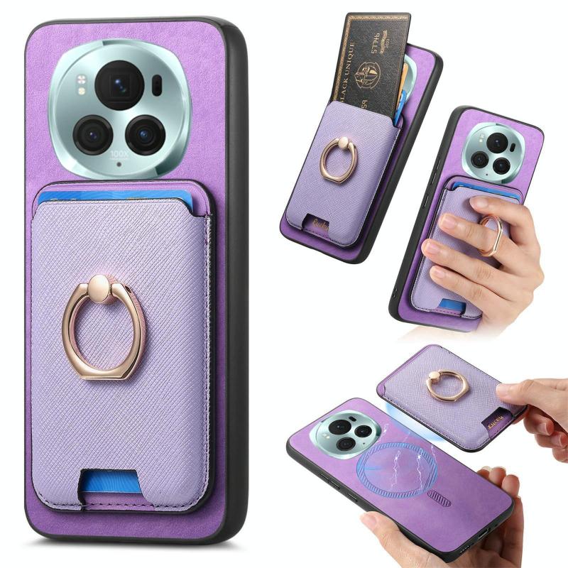 Θήκη Honor Magic6 Pro 5G Δερμάτινη Retro με Κάρτες & MagSafe (Μωβ)