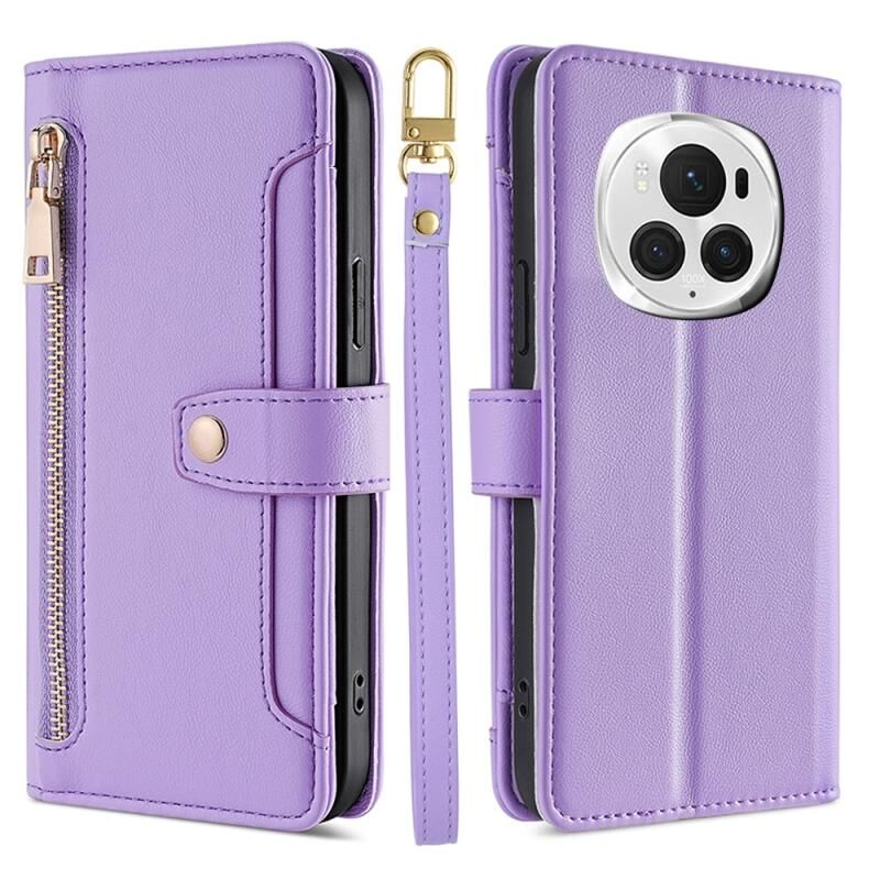 Για Honor Magic6 Pro 5G Sheep Texture Cross-body φερμουάρ πορτοφόλι δερμάτινη θήκη τηλεφώνου (μωβ)