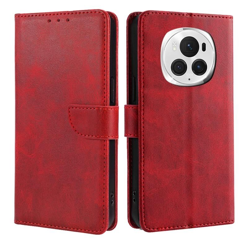 Για Honor Magic6 Pro Calf υφή πόρπη Πόρπη Flip δέρμα τηλέφωνο υπόθεση (κόκκινο)