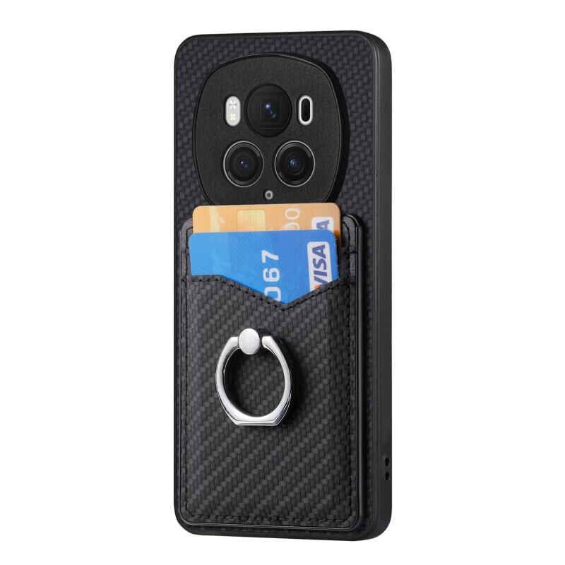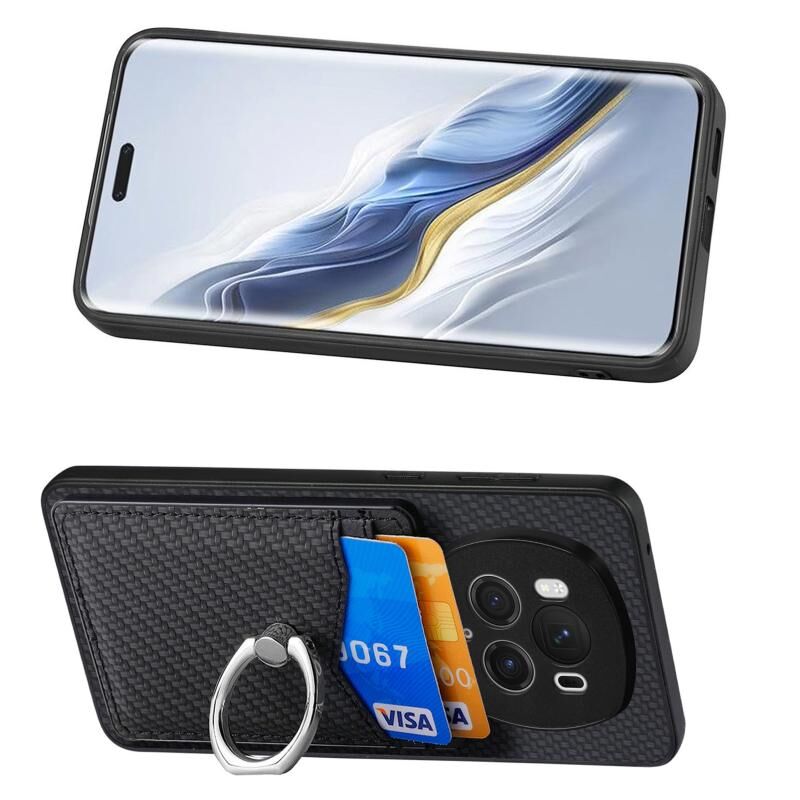 Για Honor Magic6 Pro Carbon Fiber κάρτα πορτοφόλι δαχτυλίδι υπόθεση τηλεφώνου (μαύρο)