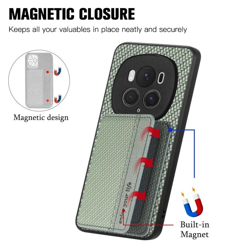 Για Honor Magic6 Pro Carbon Fiber μαγνητική κάρτα τσάντα υπόθεση τηλεφώνου (πράσινο)