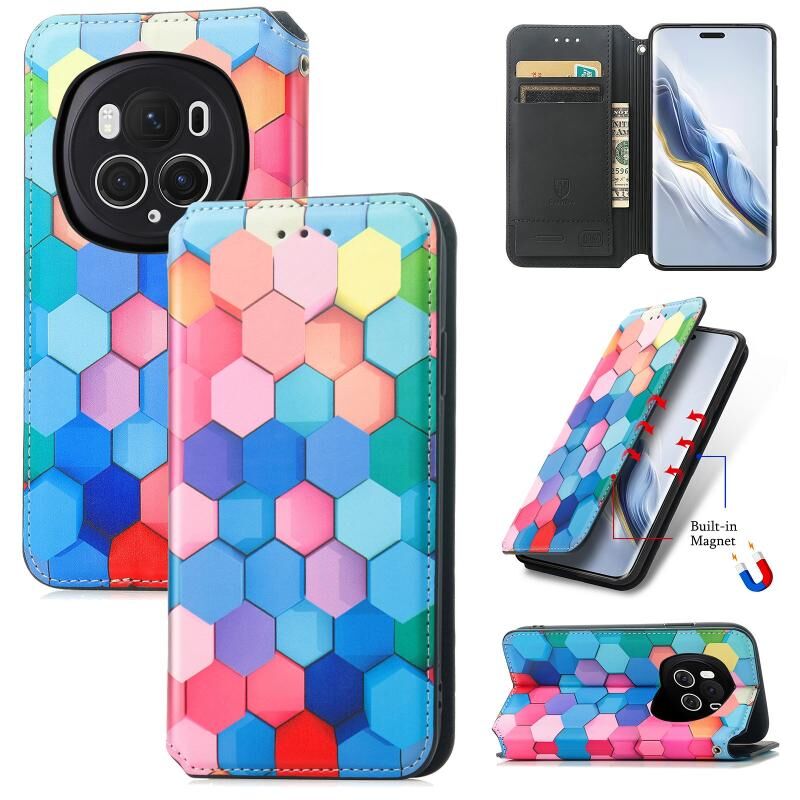 Για Honor Magic6 Pro CaseNeo πολύχρωμο μαγνητικό δέρμα τηλέφωνο υπόθεση (πολύχρωμο κύβο)