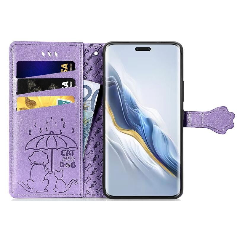 Θήκη τηλεφώνου από δέρμα με ανάγλυφο σχέδιο γάτας και σκύλου για Honor Magic6 Pro (Γκρι)