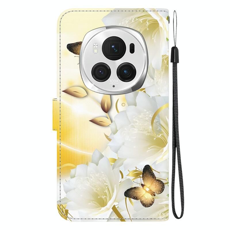 Θήκη τηλεφώνου For Honor Magic6 Pro Crystal Texture Colored Drawing Leather (Μωβ Παιώνια)