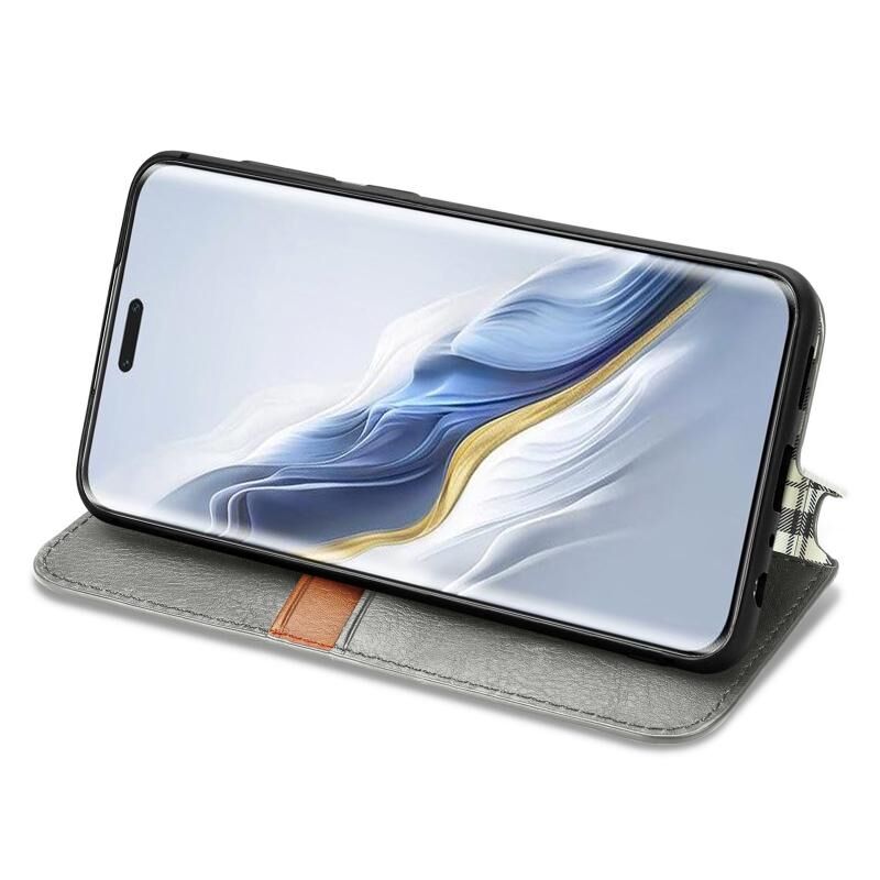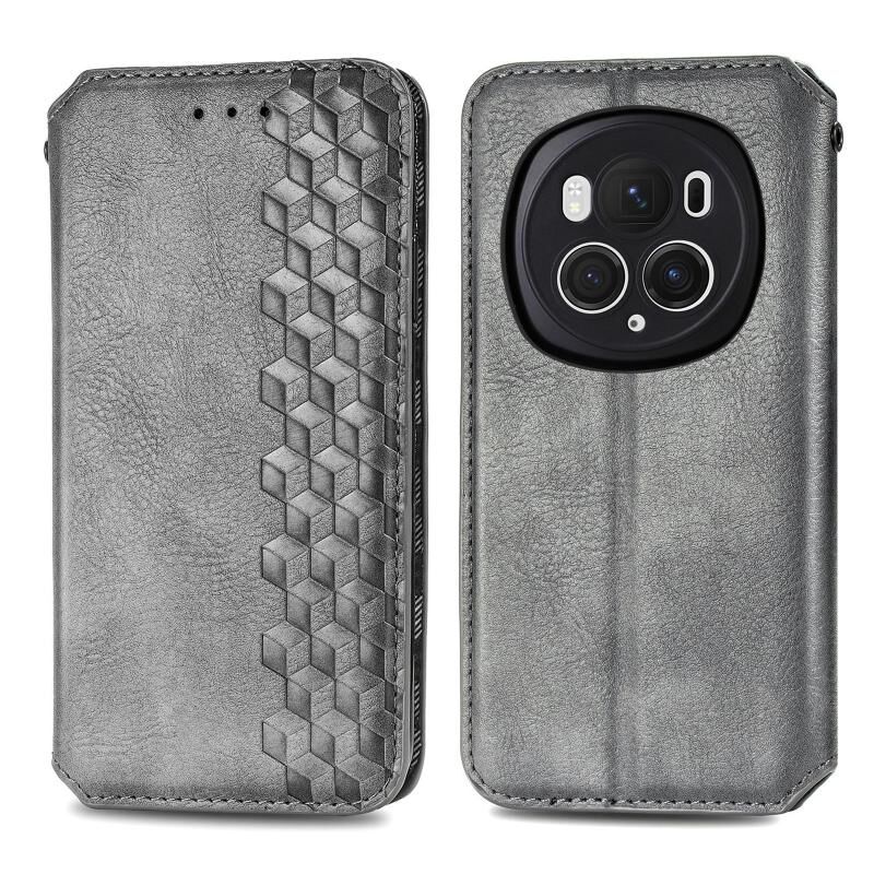 Για Honor Magic6 Pro Cubic Grid πιεσμένο μαγνητικό δέρμα τηλέφωνο υπόθεση (Γκρι)
