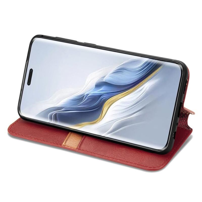 Για Honor Magic6 Pro Cubic Grid πιεσμένο μαγνητικό δέρμα τηλέφωνο υπόθεση (κόκκινο)