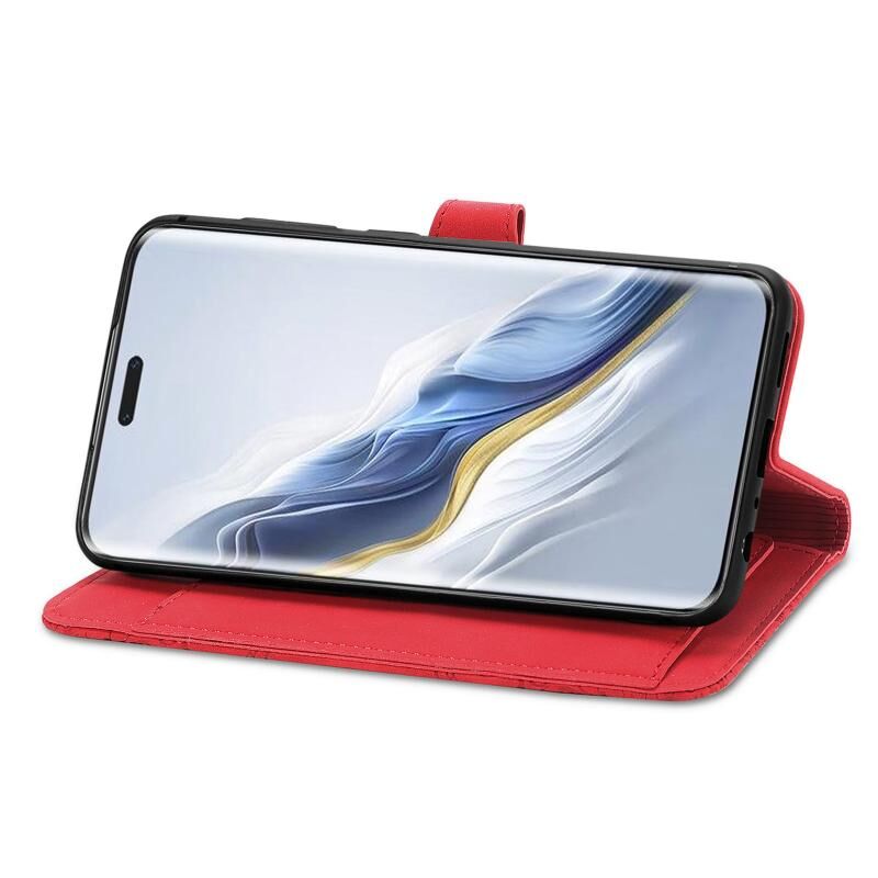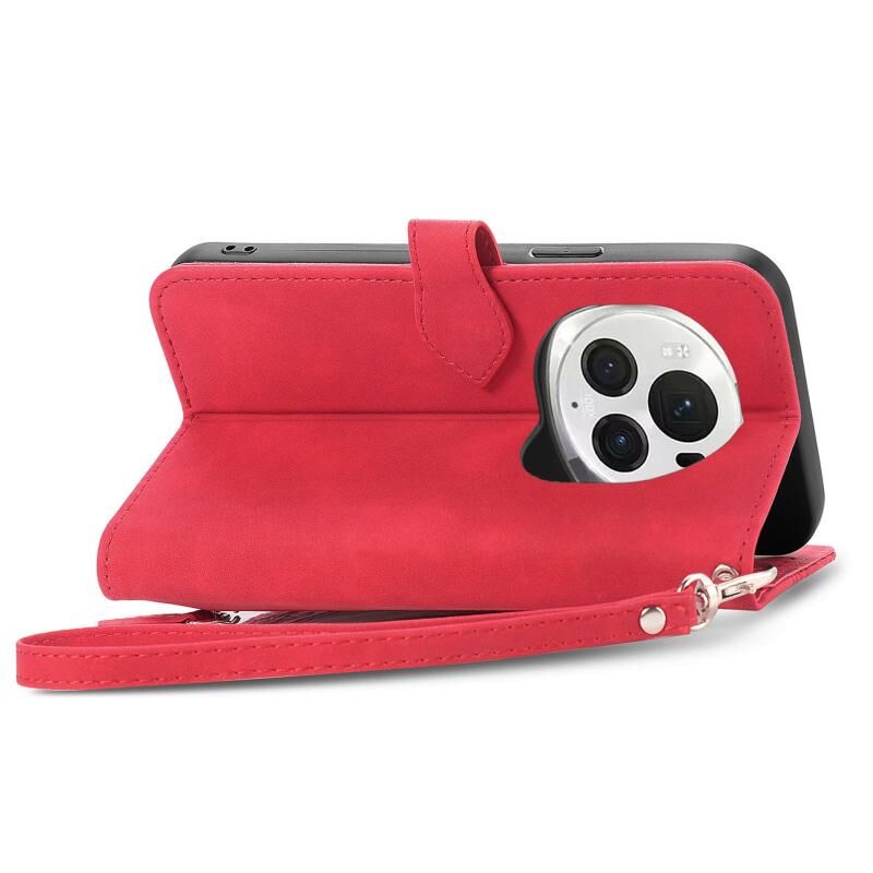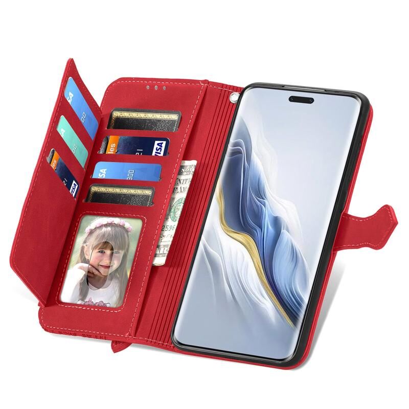 Για Honor Magic6 Pro ανάγλυφο λουλούδι φερμουάρ δερμάτινη θήκη τηλεφώνου (κόκκινο)