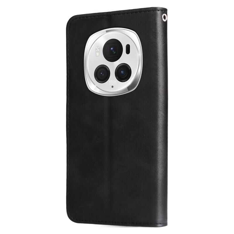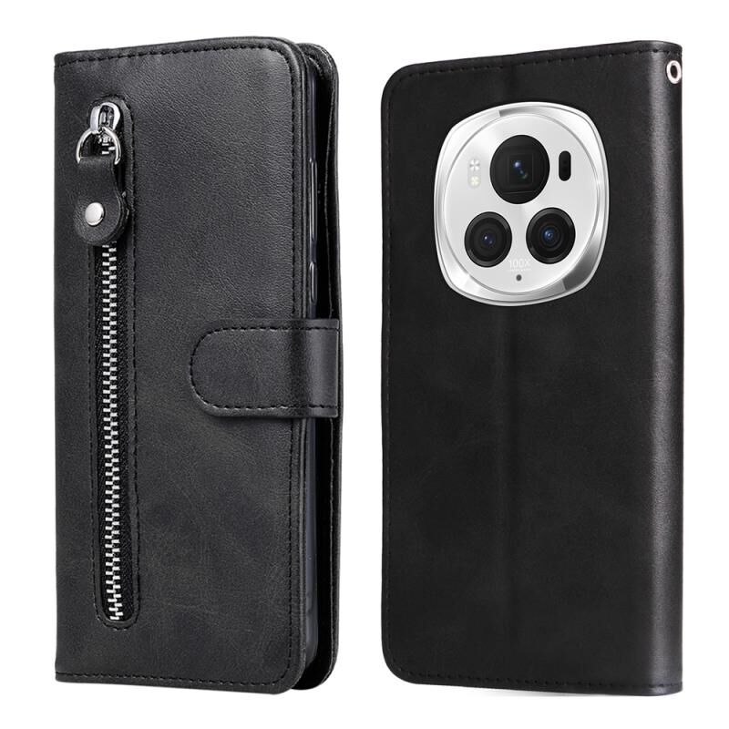 Για Honor Magic6 Pro Μόδα μοσχάρι υφή φερμουάρ δερμάτινη θήκη τηλεφώνου (μαύρο)