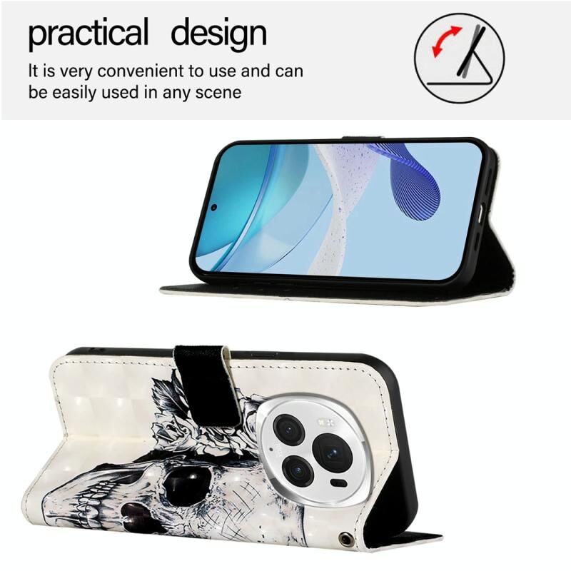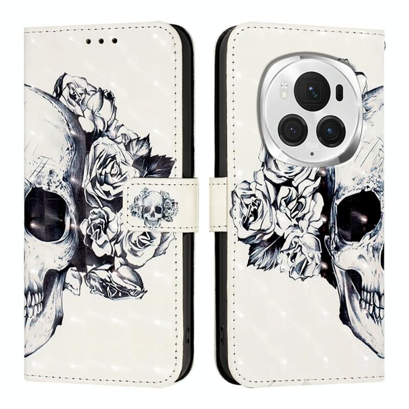 For Honor Magic6 Pro Global 3D Painting Horizontal Flip Leather Phone Case(Skull)