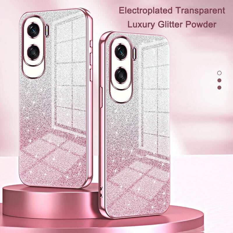 Για Honor Magic6 Pro Gradient Glitter Powder Electroplated τηλέφωνο υπόθεση (μαύρο)