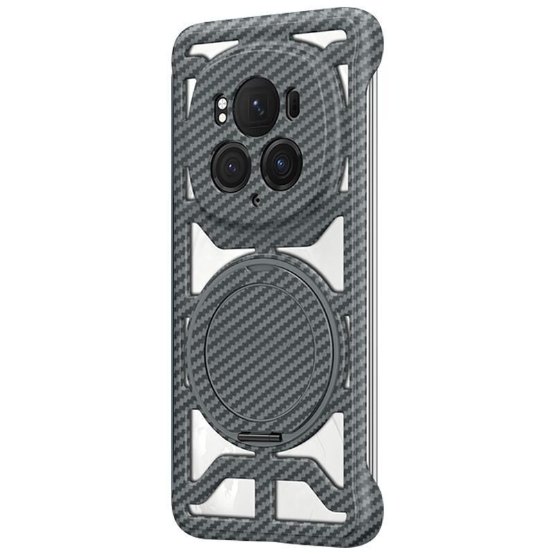Θήκη τηλεφώνου For Honor Magic6 Pro από κοίλο ανθρακονήματα με περιστρεφόμενη βάση και MagSafe (Γκρι)