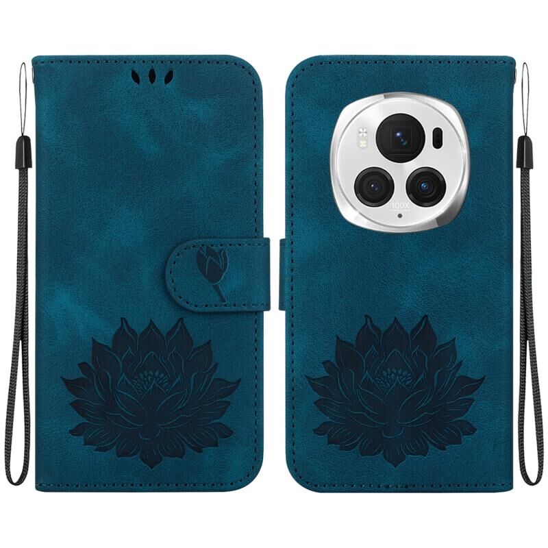 For Honor Magic6 Pro Lotus Embossed Leather Phone Case(Dark Blue)