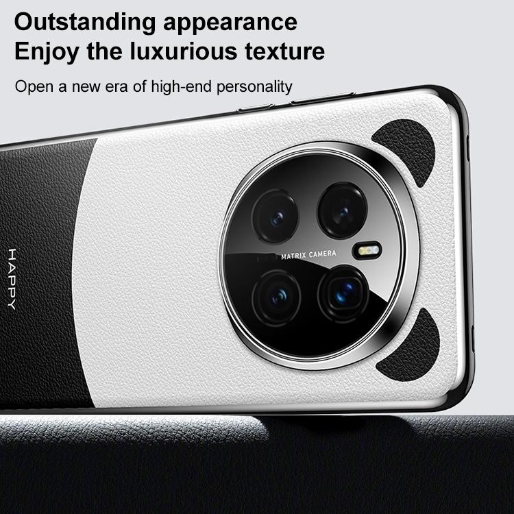 For Honor Magic6 Pro Panda 2 Plain Leather PC Phone Case(Black Red)