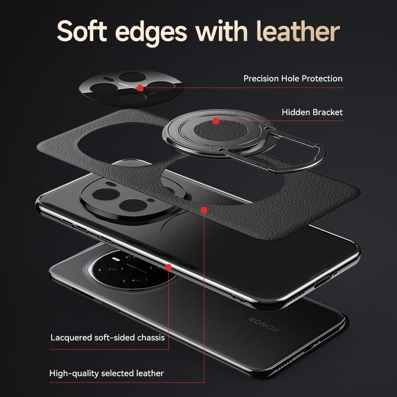 Θήκη τηλεφώνου For Honor Magic6 Pro από απλό δέρμα με υδρική μεταλλική βάση MagSafe (Καφέ)