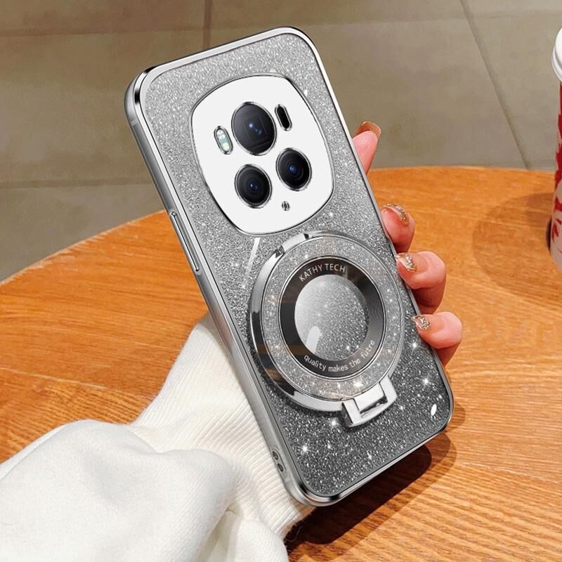 Για Honor Magic6 Pro επιμεταλλωμένο βαθμιδωτή Glitter στρογγυλή κάτοχος TPU τηλέφωνο υπόθεση (ασημί)