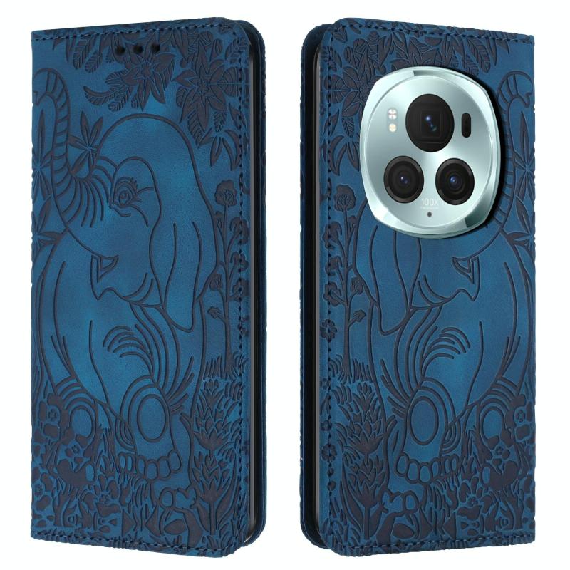 For Honor Magic6 Pro Retro Elephant Embossed Leather Phone Case(Blue)