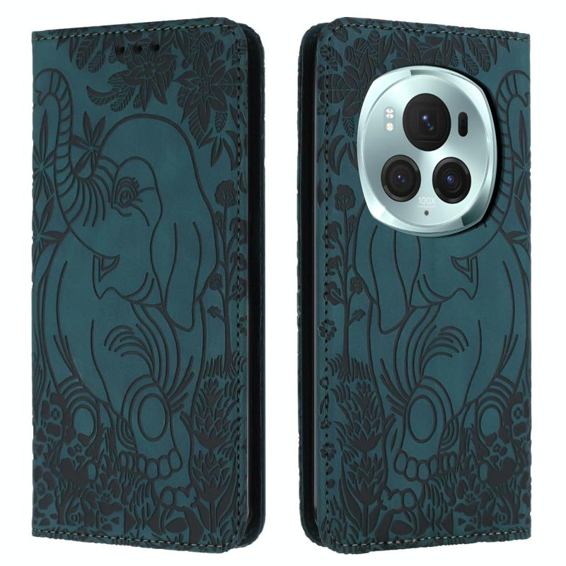 For Honor Magic6 Pro Retro Elephant Embossed Leather Phone Case(Green)