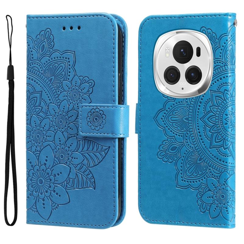 Θήκη τηλεφώνου Honor Magic6 Pro από δέρμα με ανάγλυφο σχέδιο επτά πετάλων (ανοιχτό μωβ)