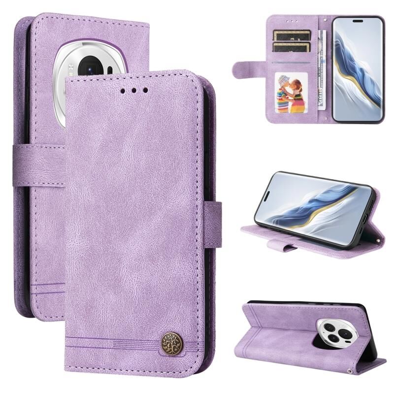 Θήκη τηλεφώνου Honor Magic6 Pro με αίσθηση δέρματος, μεταλλικό κουμπί και σχέδιο Δέντρου της Ζωής (Κόκκινο)