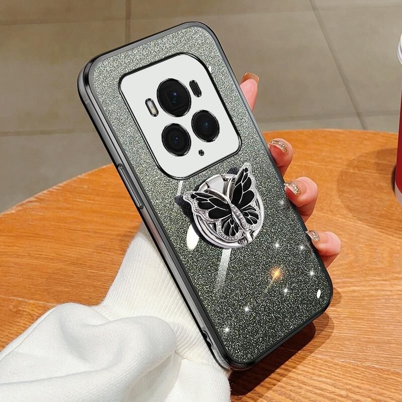 Θήκη κινητού τηλεφώνου TPU με σχέδιο πεταλούδας από γκλίτερ σε διαβαθμιστικό χρώμα για Honor Magic6 Ultimate (Ροζ)