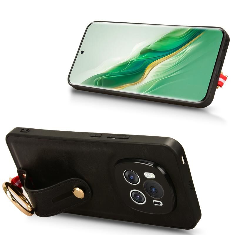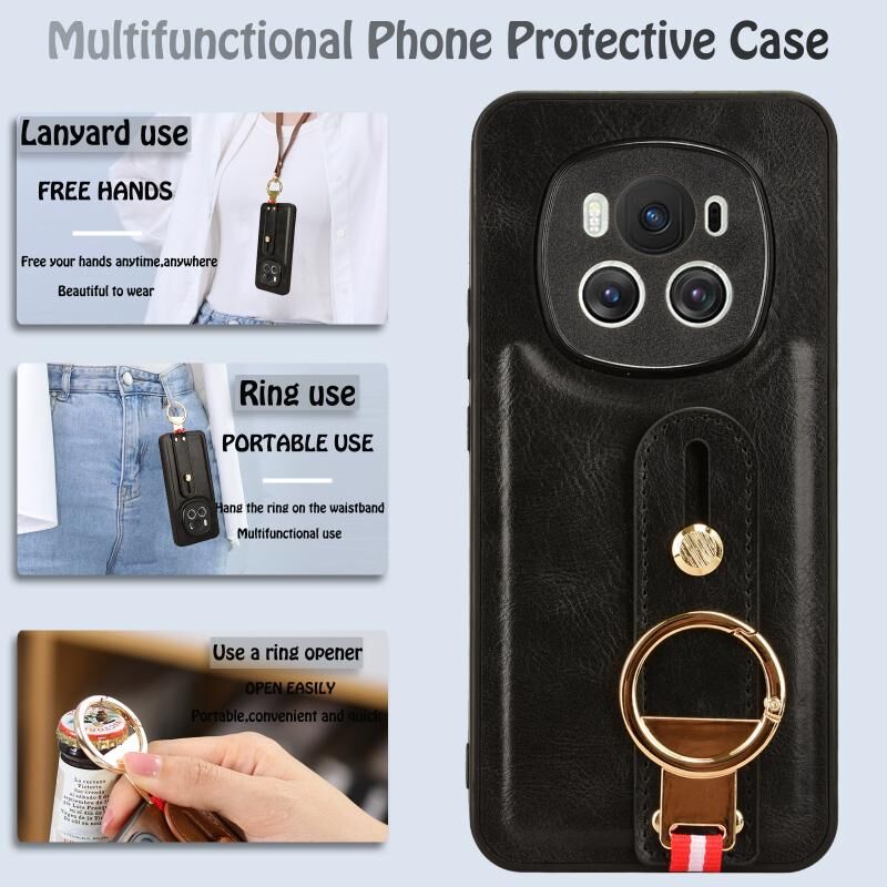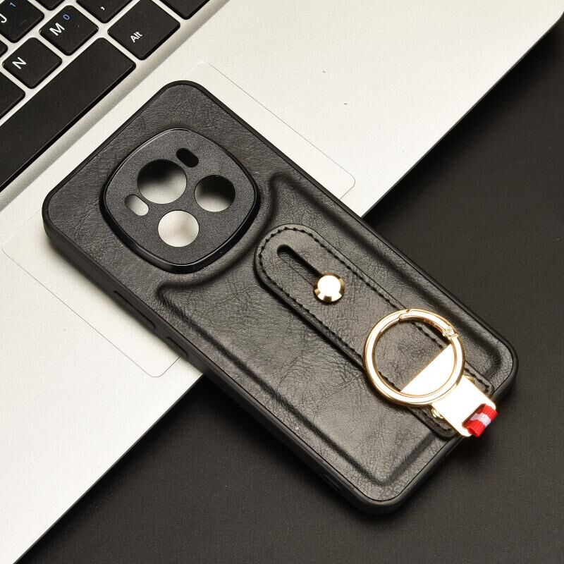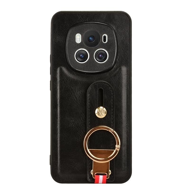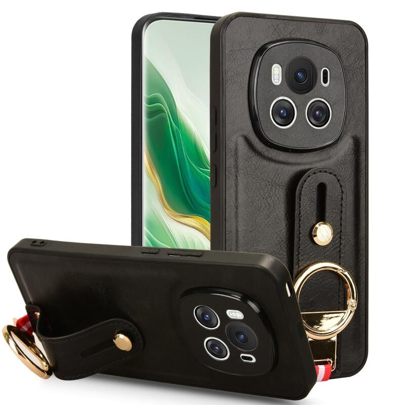 Για Honor Magic6 Wristband δέρμα πίσω τηλέφωνο υπόθεση (μαύρο)