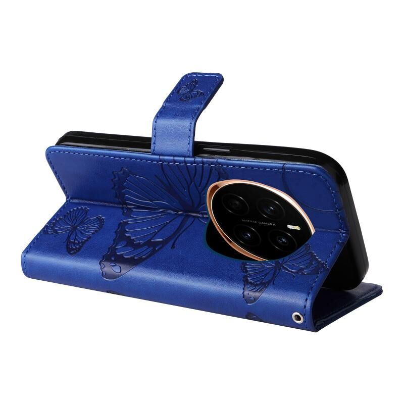 Θήκη τηλεφώνου από δέρμα με ανάγλυφο σχέδιο 3D πεταλούδας για Honor Magic7 5G (Μπλε)