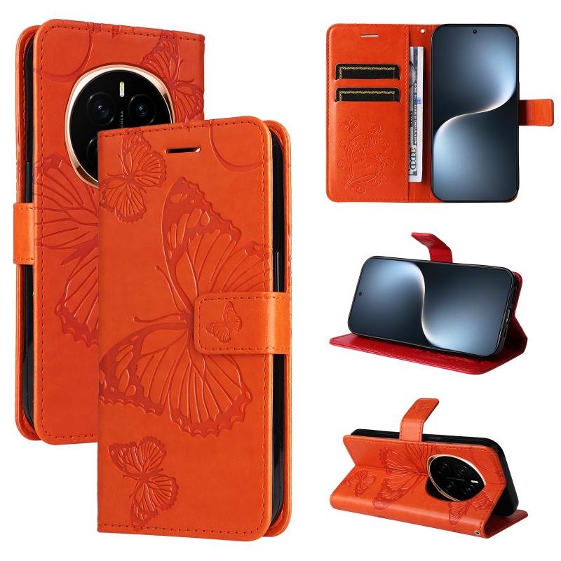 For Honor Magic7 5G 3D Butterfly Embossed Pattern Flip Leather Phone Case(Orange)