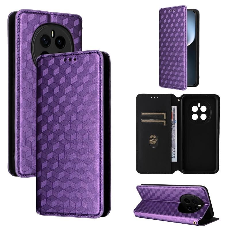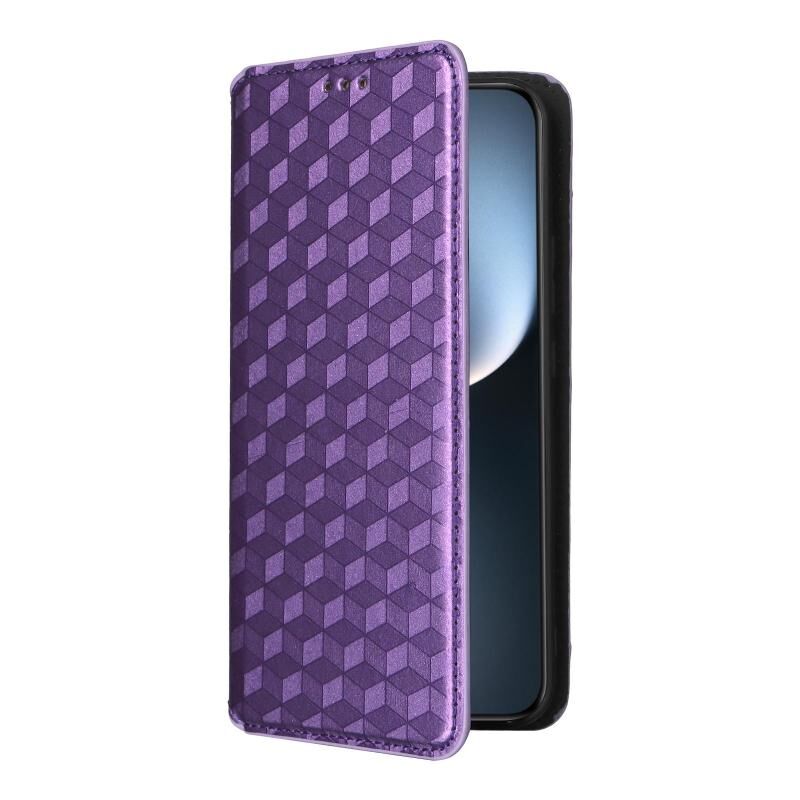 Θήκη τηλεφώνου δερμάτινη με σχέδιο Cubic Grid και λειτουργία flip για Honor Magic7 5G (Μαύρο)