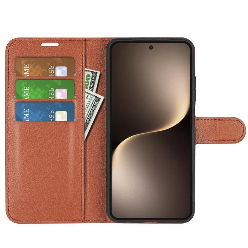 Θήκη τηλεφώνου από δέρμα με οριζόντιο άνοιγμα και υφή λυτσί για Honor Magic7 5G, με βάση στήριξης (Καφέ)