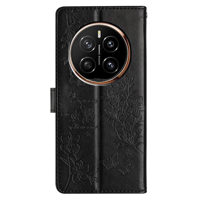 For Honor Magic7 Butterflies And Flowers Leather Phone Case(Black)