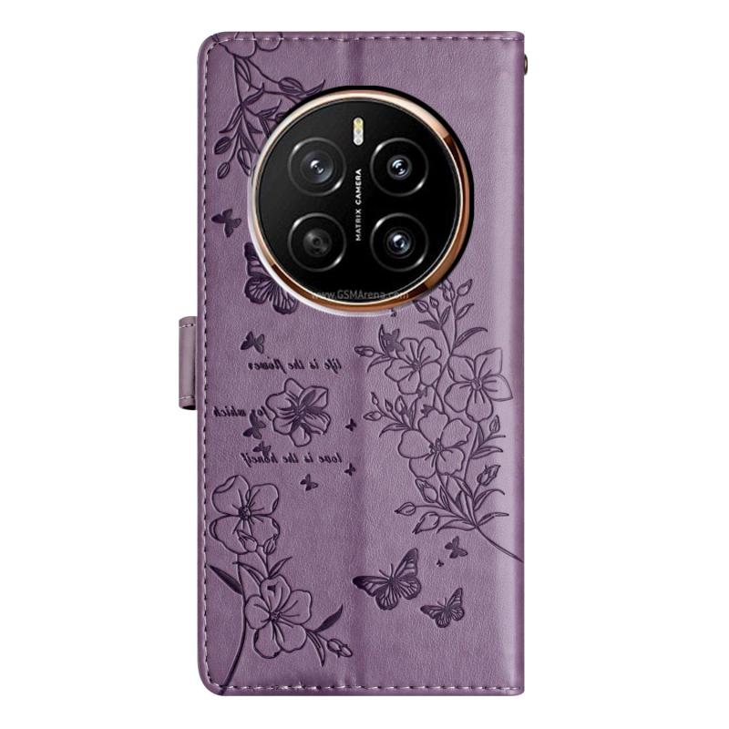 For Honor Magic7 Butterflies And Flowers Leather Phone Case(Purple)