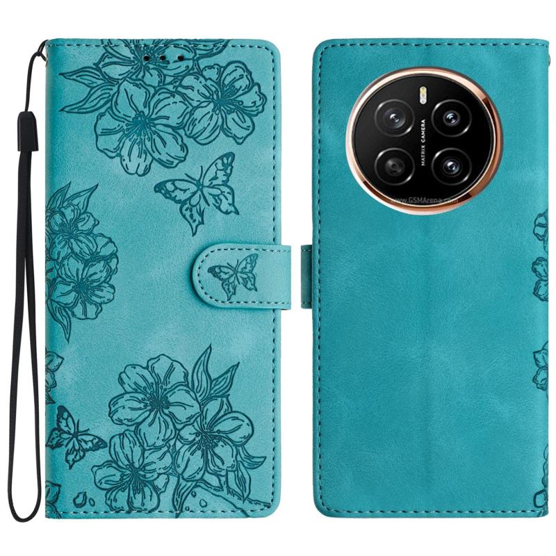 For Honor Magic7 Cherry Blossom Butterfly Skin Feel Embossed PU Phone Case(Green)