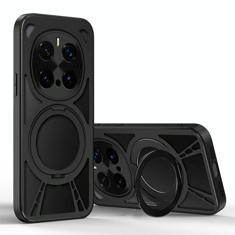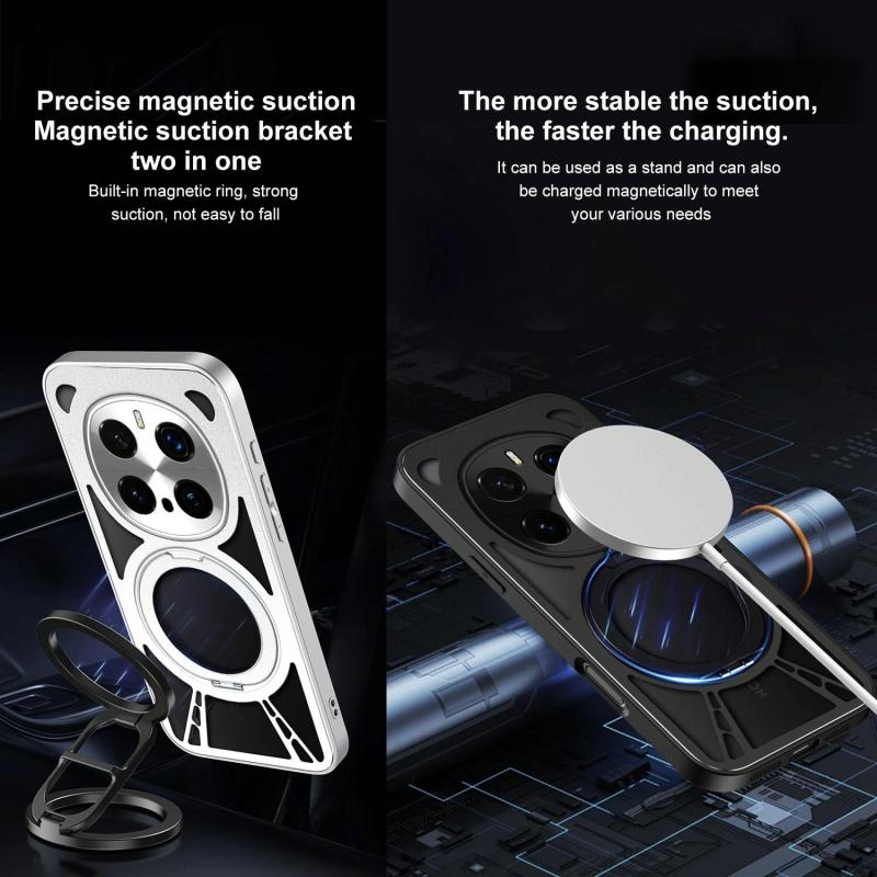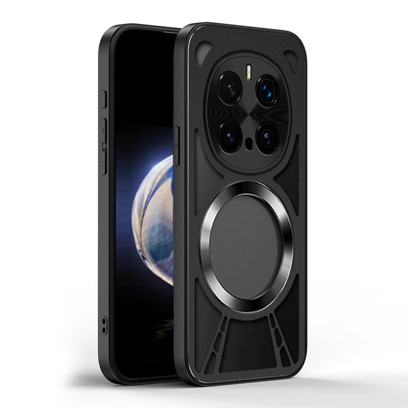 For Honor Magic7 Cooling Hollow Metal Holder MagSafe Phone Case(Black)