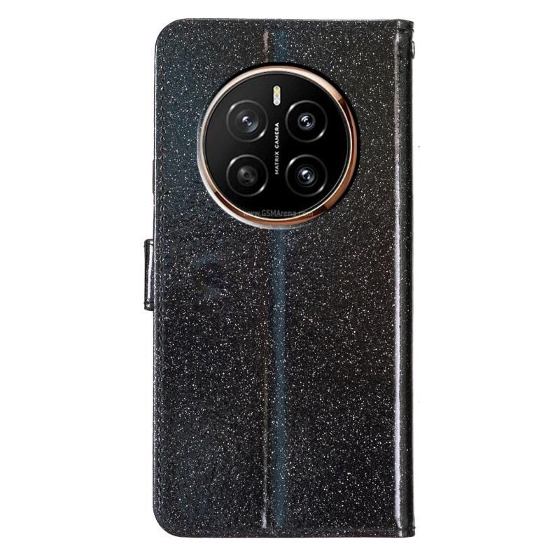 Θήκη τηλεφώνου For Honor Magic7 με γκλίτερ, δερμάτινη, αναδιπλούμενη (Μαύρο)