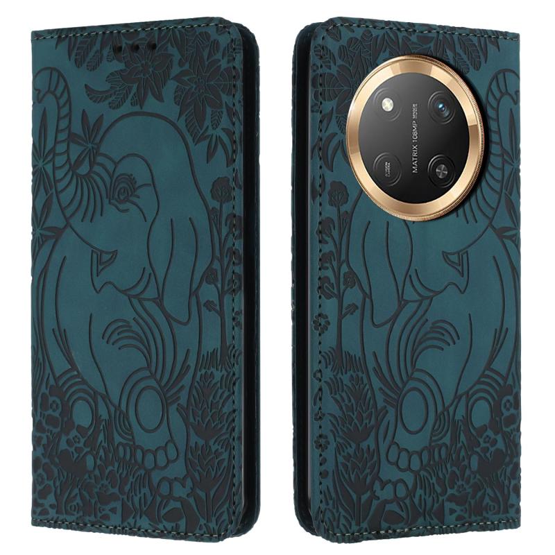 For Honor Magic7 Lite Retro Elephant Embossed Leather Phone Case(Green)