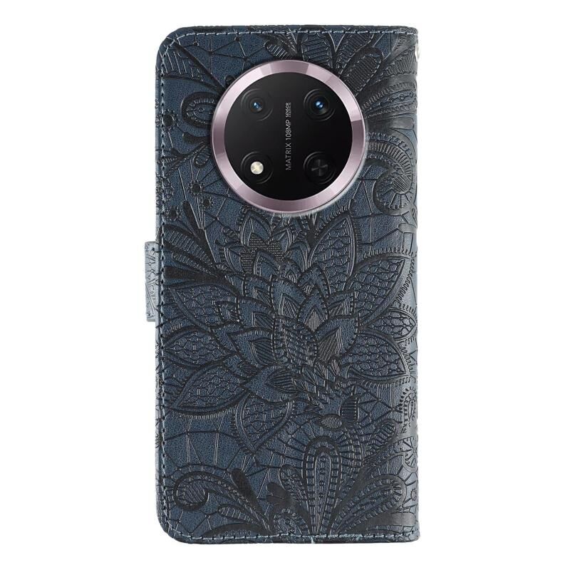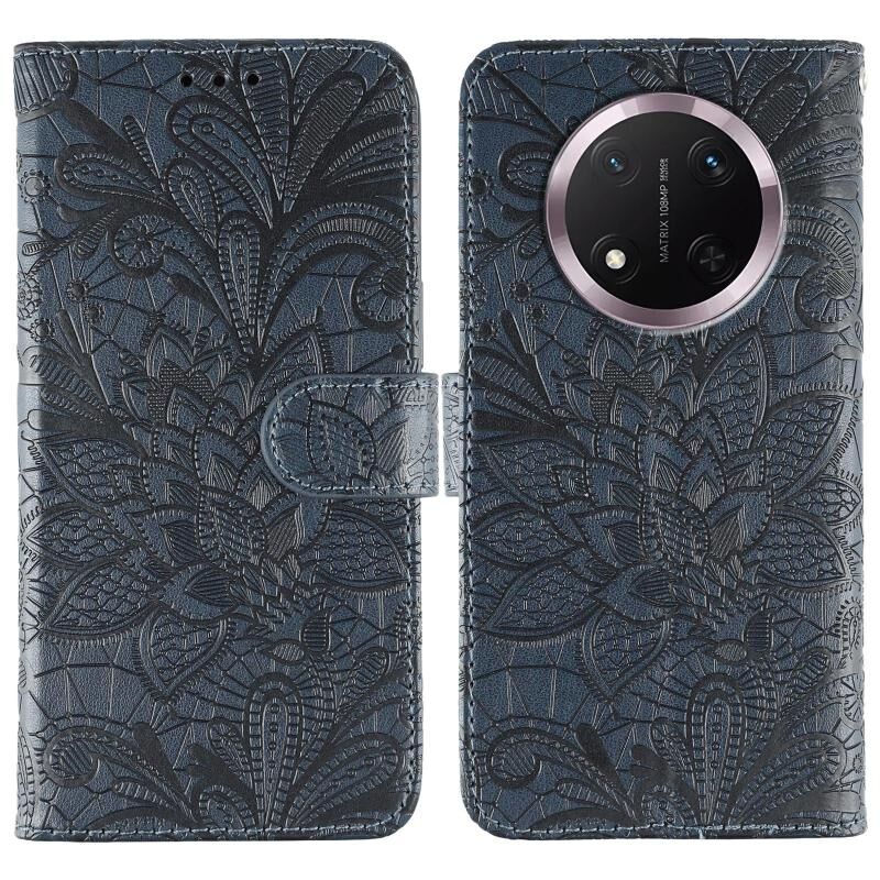 Θήκη τηλεφώνου από δέρμα με ανάγλυφο σχέδιο δαντέλας λουλουδιών για Honor Magic7 Lite / X9c (Γκρι)