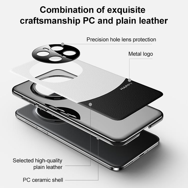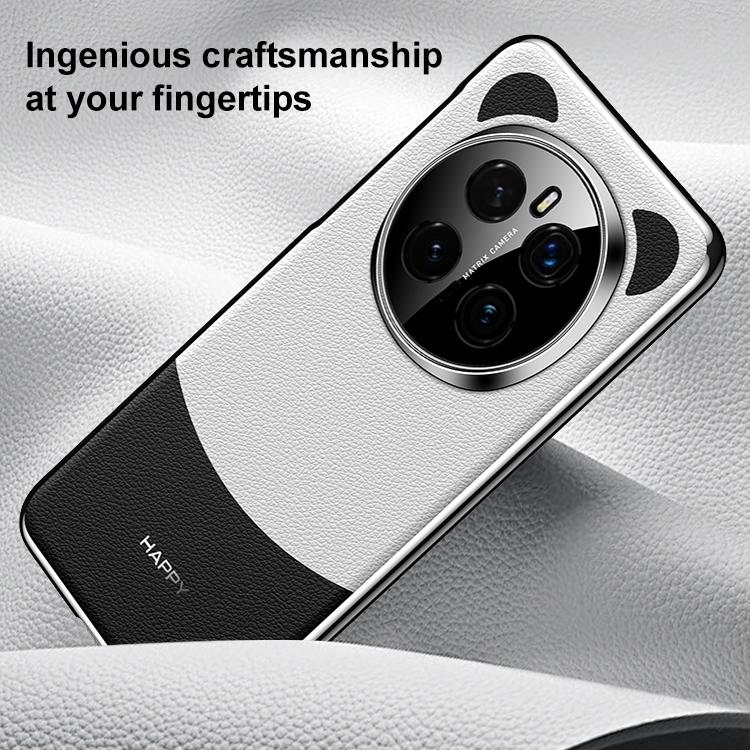 For Honor Magic7 Panda 2 Plain Leather PC Phone Case(Black White)