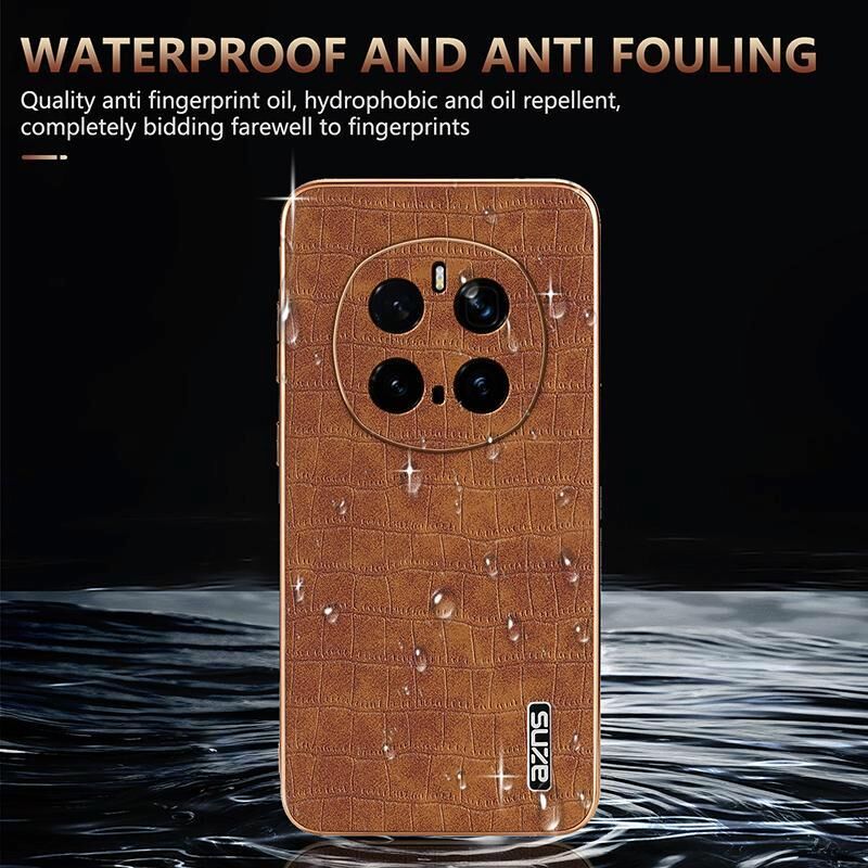 Θήκη κινητού τηλεφώνου For Honor Magic7 Pro AZNS Επιμεταλλωμένο πλαίσιο Υφή κροκόδειλου Πλήρης κάλυψη (Μαύρο) (AZNS)