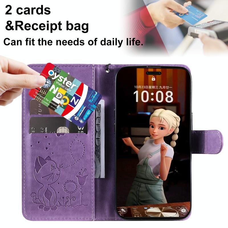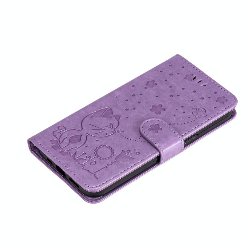 Για Honor Magic7 Pro Cat Bee ανάγλυφο μοτίβο Shockproof δερμάτινη θήκη (μωβ)